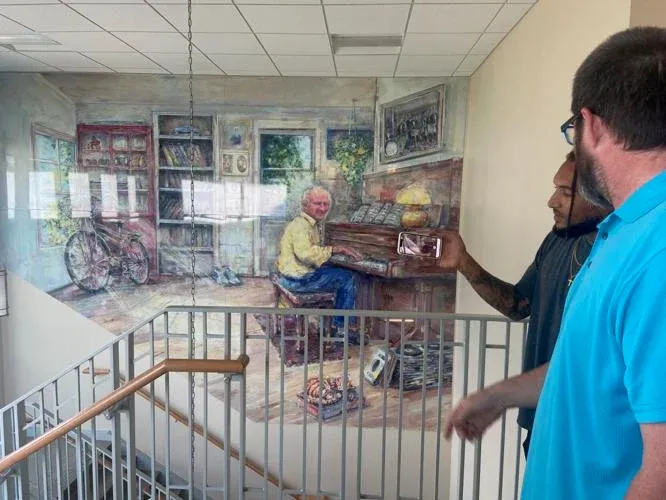Visitors see Rudy Gelnett come to life, playing the piano directly from the mural.