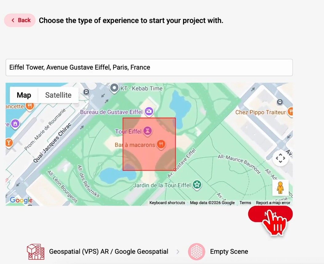 Select Geospatial AR as the experience type.